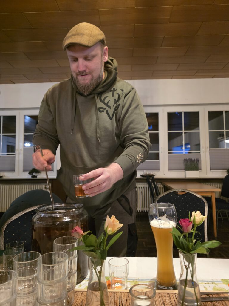 Anlässlich der Geburt seines Sohnes hat Jannes zusätzlich „Bohnensopp (Kinnertön)“ mitgebracht und großzügig ausgeschenkt.